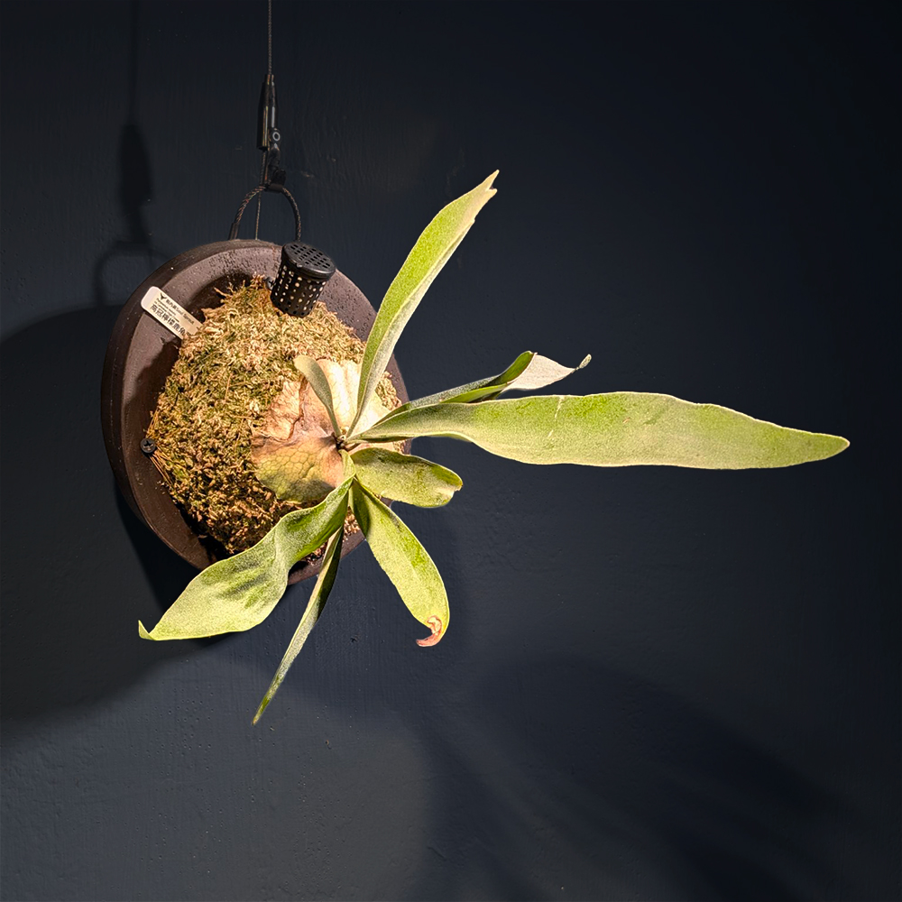|營養葉|葉冠尖細且高聳 |孢子葉|提供充足的光線,厚厚的手非常挺立向上生長、表面附有濃密的白色絨毛,可以減少水分流失及天然防曬喔!