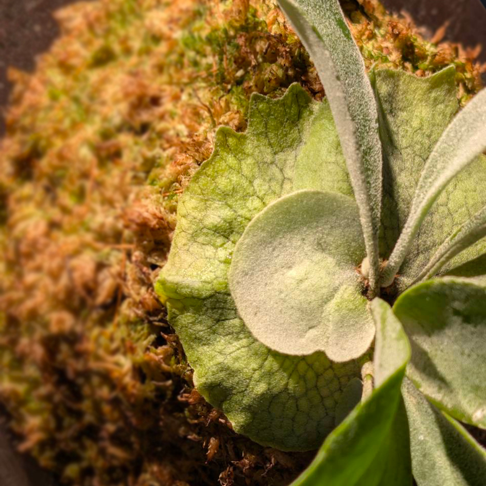|營養葉|葉冠尖細且高聳 |孢子葉|提供充足的光線,厚厚的手非常挺立向上生長、表面附有濃密的白色絨毛,可以減少水分流失及天然防曬喔!